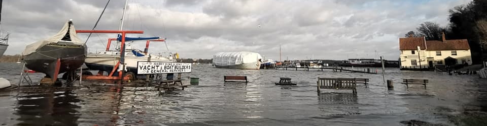 Anthony Cullen and Mark Sanderson captured the scene outside the Butt and Oyster and along the foreshore to Harry King’s boatbuilders below. Click on the Facebook logos ([f]) to go the original photos.