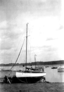 In this vintage photo of Nancy Blackett, Arthur Ransome can be seen scrubbing her on the shore at Waldringfield on the River Deben.